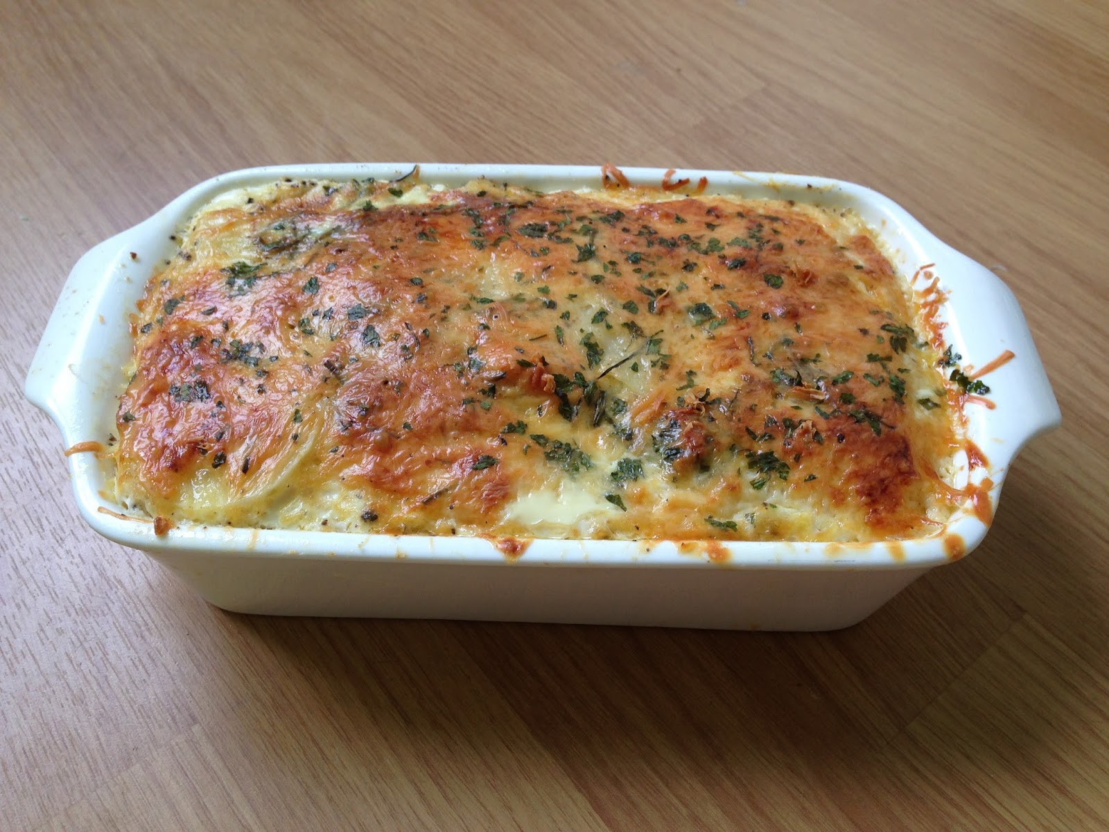 Verwarm de oven voor op 200 graden Celsius. Vet een ovenschaal in en verdeel hier bloem over. Begin met een laagje aardappelen, gevolgd door een laagje ui met peper en zout en een deel van de verse kruiden. Herhaal dit steeds totdat de aardappelen op zijn. Verdeel vervolgens op de bovenste laag ook nog de knoflook. Schenk vervolgens melk in de ovenschaal tot ongeveer 3/4 van de rand en vervolgens de eieren. Probeer de eieren met een vork een beetje door de gehele ovenschotel te verdelen. Besprenkel de ovenschotel vervolgens met een ruime hoeveelheid kaas en de laatste verse kruiden. Dek de schaal af met aluminiumfolie en zet 60 minuten in de voorverwarmde oven. Haal vervolgens de folie eraf en laat nogmaals 30 minuten in de oven staan om een krokant laagje te creëren.
