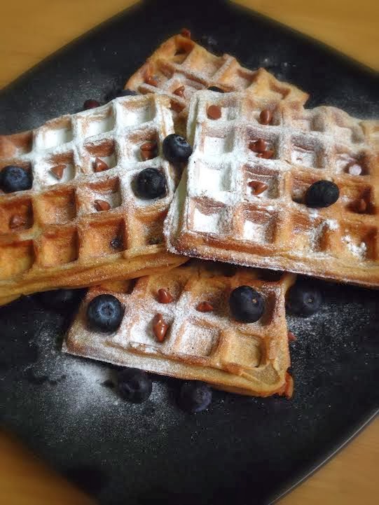 Gisterochtend bakte ik deze heerlijke waffels. Met verse blauwe bessen en poedersuiker waren ze een heerlijke brunch.